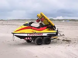 Für die Aufgaben der Lifeguards auf den Westfriesischen Inseln stehen der KNRM 130 PS starke Jetskis zur Verfügung. Diese sind auf einem Spezialanhänger verladen und können schnell mit einem Geländewagen an den Strand und ins Wasser gebracht werden. Zur Aufnahme und Rettung von schwimmenden Personen führen die kleinen Boote eine Kunststoffmatratze mit sich, auf der sich Ertrinkende gut festhalten können.