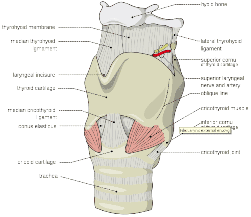 Der Zugang zum Atemtrakt wird in Höhe des Kehlkopfes hergestellt. Dabei wird die Membran (Ligamentum conicum, die freie Stelle des Ligamentum cricothyroideum) zwischen Ringknorpel und Schildknorpel eröffnet.