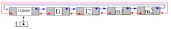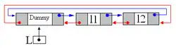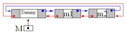 Zeile 2: Nachfolger vom letzten Objekt der Liste M ist der Dummy von Liste L.