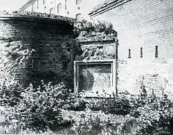 Die Befestigungen dieses Bereiches (zwischen Türmchenstor und Frankenturm) verstärkte man durch einen der Eisenbahndurchfahrt aufgesetzten Kavalier, der mit seinem Unterbau durch eine mit Schießscharten versehene Mauer (krenelierte oder Carnot-Mauer) mit der Ringmauer verbunden war.[16]