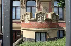 1905 entwarf der Architekt Heinrich Band (1855–1919) ein viergeschossiges Wohnhaus an der Uferstraße 67, welches mit einer aufwändigen Sandsteinfassade ausgestattet wurde. Das Gebäude erhielt nach 1918 eine geschnitzte, noch heute erhaltene massive Eingangstür. Sie entstammte dem Gebäude der 1853 durch Gustav von Mevissen geschaffenen Concordia-Versicherung aus der damaligen Eintrachtstraße.[31]