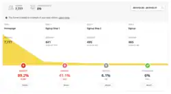 Die Konversionspfad-Analyse oder Trichter-Analyse (eng. funnel analysis) umfasst die Zuordnung und Analyse einer Reihe von Ereignissen, die zu einem definierten Ziel führen, z. B. den Verlauf von der Werbung zum Kauf in der Online-Werbung oder der Ablauf, der mit der Benutzerbindung in einer Mobile App beginnt und in einem Verkauf auf einer E-Commerce-Plattform endet.[1] Konversionspfad-Analysen sind eine effektive Möglichkeit, Konversionsraten für ein bestimmtes Nutzerverhalten zu berechnen.[2] Dies kann in Form eines Verkaufs, einer Registrierung oder einer anderen beabsichtigten Handlung durch ein Publikum erfolgen.
