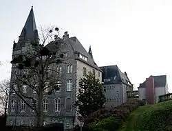 Das Gebäude wurde 1903/05 nach dem Entwurf des Limburger Diözesanbaumeisters Jakob Fachinger errichtet. Als weithin sichtbarer Standort wurde die östliche Kante der „Damfeld“ genannten Hochebene westlich der Stadt ausgewählt.