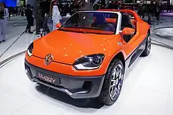 Das Konzept für den viersitzigen Kleinstwagen VW up! wurde auf der Internationalen Automobil-Ausstellung 2007 in Frankfurt am Main vorgestellt. Der Motor befand sich im Heck, wodurch auf einen Kühlergrill in der Front verzichtet werden konnte, was Parallelen zum VW Käfer erkennen ließ. Zentrales Element des Cockpits war ein Touchscreen mit Näherungssensorik, über den Navigationssystem, Radio, Klimaanlage und Bordrechner bedient werden, wodurch auf eine Vielzahl an Schaltern verzichtet werden konnte.[2]