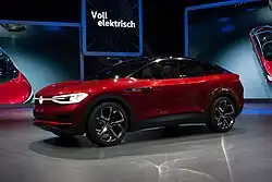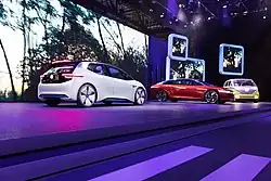 2016 stellte VW auf dem Pariser Autosalon den VW ID. vor, ein Elektroauto mit einer Reichweite von bis zu 600 km. Angetrieben wird das Fahrzeug von einem 140-kW-Heckmotor. Das Fahrzeug hat eine Länge von 4,10 Metern und basiert auf dem Modularen E-Antriebs-Baukasten (MEB).