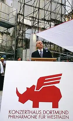 - ↑ Philharmonie für Westfalen: Grundsteinlegung für Konzerthaus in Dortmund. In: Baunetz. 18. Oktober 2000, abgerufen am 17. März 2025.