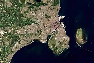 - Die drei Kommunen Kopenhagen, Frederiksberg und Gentofte werden als „Hauptstadt“ (Hovedstaden)[6] zusammengefasst und haben zusammen eine Fläche von 120,5 km².[5] (Flächenangaben von 2014)