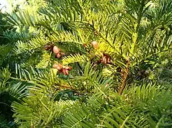 - ↑ Christopher J. Earle: Botanische Informationen zur Gattung der Cephalotaxus bei www.conifers.org, The Gymnosperm Database, 2020.