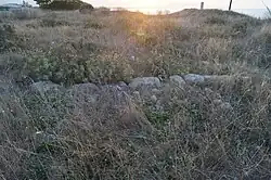 Im äußersten Westen des Grabungsgeländes entdeckte man ein etwa 10 m langes Stück der Befestigungsmauer. Es bestand aus kleinen Steinen und war etwa 2 m dick und 1,70 m hoch. Ein Turm von 10 × 9,55 m war in die Mauer integriert.