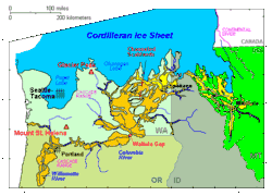 Anders als vom Laurentidischen Eisschild, von welchem angenommen wird, er hätte mehr als elftausend Jahre zum Abschmelzen benötigt, wird vom Kordilleren-Eisschild mit Ausnahme der auch heute noch vergletscherten Gebiete vermutet, dass er sehr schnell schmolz, möglicherweise in 4.000 Jahren oder weniger. Dieses rapide Schmelzen führte zu Fluten wie beim Überlauf des Lake Missoula und formte die Topographie des extrem fruchtbaren Inland Empire von Ost-Washington.