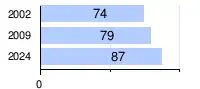 | 2002 | 74[2] |