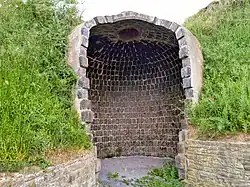 In den Jahren 1825 bis 1841 entstanden in Friedeburgerhütte, einem Industriedorf, das eine wichtige Rolle in der Verwendung von Mansfelder Kupferschlackensteinen als Baustoff spielte, da hier schon im Jahr 1795 die Verwendung für Baustoffe angeregt wurde, zehn unterirdische Silos, die 4,5 bis 9,5 Meter hoch waren. Errichtet wurden sie von dem Kupferbergwerk für jene Familien, die dort auch beschäftigt waren. Untergebracht wurde in den Kornflaschen Getreide, das sie als Deputatlohn erhalten hatten.[3][2] Ziel war es zudem, das Getreide für die eigenen Arbeiter günstig anzubieten.[1] Bis zum Jahr 1829 wurden sechs errichtet, 1841 folgten zwei weitere.[4] Es wird vermutet, dass die Unruhen (Kornkrawalle) von 1847 weitere Errichtungen bedingten, so dass die letzten Kornflaschen im Jahr 1848 entstanden wären.[5] Diese Nutzung endete um 1870.[6] Später diente sie unter anderem als Freizeitstätte für Kinder und Proberaum für den Chor.[7] Im Jahr 2011 wurde eine Informationstafel aufgestellt, die die Kornflaschen als Geopunkt 7 der Landmarke 19 des Geo-Naturparks Harz ausweisen.[8] Im Jahr 2017 kam die Idee einer Partynacht an den Kornflaschen auf, welche in den Jahren 2018 und 2019 erneut durchgeführt wurde.[9][10] Auf Informationsmaterialien wird häufiger auf die Silos hingewiesen.[11][12] Auch wird versucht, sie touristisch zu erschließen bzw. durch Exkursionen dorthin Bewusstsein für ihre Bedeutung zu schaffen.[13][14][15][16][17][18]