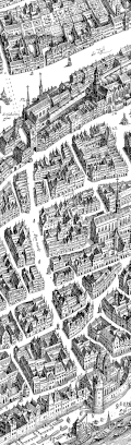 | Bauwerke | Katharinenpforte (†), Parkhaus Hauptwache, Große Stalburg (†), Deutsch-reformierte Kirche (†), ehem. Bundesrechnungshof, Bethmann-Bank, Rathaus-Erweiterungsbauten, Leonhardskirche, Leonhardstor (†) |