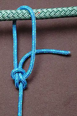 Mit dem losen Ende auf Slip gelegt wird der Knoten auch Kalmückenknoten genannt.