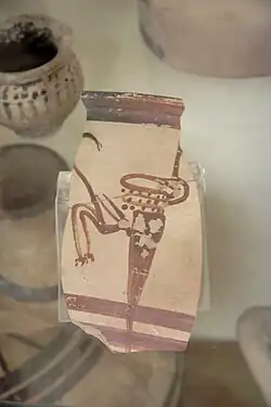 Andere Räume dienten als Lagerräume; hier fand man Keramik, Vorratsgefäße, Waffen, Werkzeuge, Violinbogenfibeln, ein Teil eines Elfenbeinmöbels, ein Stück Bergkristall, Perlen, Knöpfe, Spinnwirtel, Gemmen und andere Artefakte, darunter ein Bronzepferd. In der Anlage des Gebäudes und den Fundstücken aus dem Späthelladikum (Übergang von SH III B2 zu SH III C um 1190 v. Chr.)[3] sah Schilardi Parallelen zur Ausgrabungsstätte der mykenischen Siedlung von Maa-Palaeokastro (Μάα-Παλαιόκαστρο) bei Paphos an der Westküste Zyperns, die Standortwahl erinnert an die Ausgrabungsstätte von Pyla-Kokkinokremmos (Πύλα-Κοκκινόκρεμμος) im Südosten Zyperns.[1]