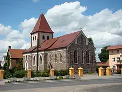 Die Dorfkirche wurde im 13. Jahrhundert erbaut. An ihr befinden sich drei Schachbrettsteine.[8] 1803 brannte die Kirche aus.[9] Sie wurde 1821 für die evangelische Gemeinde von Kohlow wieder erbaut und 1854 verschönert. Das Patronat über die Kirche übte im 19. Jahrhundert die evangelische Gutsbesitzerfamilie Kaphengst aus.[1]