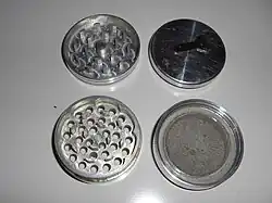 - ↑ Was ist ein Grinder/Crusher und alles, was man dazu wissen sollte. Cannaverify, 4. April 2022, abgerufen am 31. Mai 2020 (deutsch).