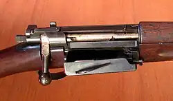 | Militärische Bezeichnung | .30 Caliber Springfield Rifle of the Krag-Jorgensen Pattern (USA) |