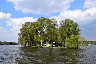 Um 1916 entstanden bei der Gaststätte neue Wirtschaftsräume und vereinzelte kleine Hütten, ab 1930 wurden sie zu Lauben umgebaut und schrittweise erweitert. Die Nutzer der Lauben suchten im Zweiten Weltkrieg dort vielfach Zuflucht vor den Luftangriffen auf Berlin. Seit 1947 befindet sich auf der Landzunge offiziell eine Laubenkolonie.