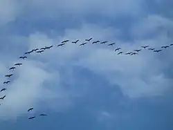 - ↑ Elke Brüser: Kraniche: Frühe Zählstunde. In: Flügelschlag und Leisetreter. 3. Oktober 2020, abgerufen am 12. Oktober 2020.