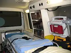 - Gebräuchliche Bezeichnung für Krankentransportwagen mit einer besonderen Bauform.[8] Diese Bauform basiert auf großen PKW-Fahrgestellen (in Deutschland nahezu ausschließlich Mercedes) mit verlängerter und höherer Karosserie. Diese Bauform war in Deutschland von Ende der 1960er bis Mitte der 1990er Jahre sehr weit verbreitet. Vereinzelt sind Hochlang-KTW auch auf Fahrgestellen von Opel aufgebaut worden.[9]