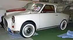 Genannt werden die Modelle Lloyd Alexander Frua und Mikrus MR-300. Des Weiteren sind ein Goliath GP 700 und ein Glas Isar S 35 abgebildet.[1] Der letztgenannte war der Prototyp eines Coupés auf Glas-Isar-Basis mit einer Karosserie des Goggomobil-Coupés, die im Frontbereich angepasst wurde. Ausgestellt war allerdings ein Nachbau, da das Original als verschollen gilt.