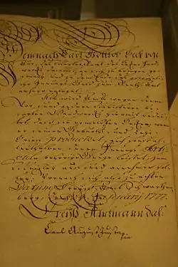 - ↑ Urkunde von 1777 mit seiner Unterschrift als Exponat im Stadtmuseum Aue und Erwähnung Justs in einer Urkunde der kurfürstlichen Verwaltung von 1787