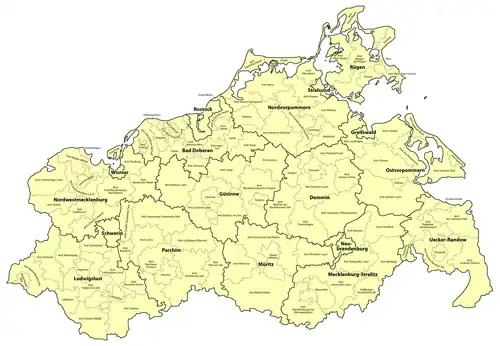 - ↑ Landkreise. ( vom 25. September 2011 im Internet Archive) Landesportal Mecklenburg-Vorpommern.