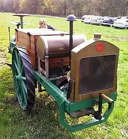 Das verwendete Fahrgestell war ein ab 1914 hergestellter dreirädriger Praga Motorpflug. Dieser Motorpflug sollte zu Mechanisierung der landwirtschaftlichen Arbeit beitragen. Das Fahrzeug für den Panzerwagen wurde den Verteidigern von Lemberg von den dortigen reichen Grundbesitzern geschenkt worden. Der Motor war ein wassergekühlter 4-Zylinder-Benzinmotor mit 32 PS Leistung. Dieser wurde neu eingebaut, da der ursprüngliche Motor mit 10 PS zu schwach war. Dabei wurden die beiden Vorderräder angetrieben und das hintere Rad diente nur zum Lenken des Fahrzeuges.