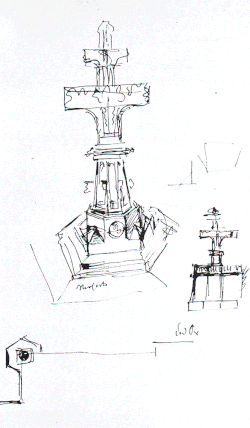Schon Dombaumeister Richard Voigtel hatte ursprünglich die Fertigung einer dritten Kreuzblume als „Denkmal der Domvollendung“ angestrebt. Er sah in einer Skizze und einem Entwurf von 1879 eine 10,5 Meter hohe Nachbildung der Kreuzblumen vor, die auf der südöstlichen Ecke der Domterrasse aufgestellt werden sollte. Voigtel konnte sich mit dieser Idee jedoch nicht durchsetzen.[2]