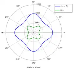 Der Kreuzverbund ist in seinen Symmetrieachsen als Scheibe und Platte orthotrop. Er besitzt in diesen Achsen keine Scheiben-Platten-Kopplung (siehe klassische Laminattheorie). Bei gleichen Schichtdicken sind die Elastizitätsmoduln in x- und y-Richtung identisch.