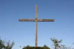 Das Kreuz aus Spurlatten ist das älteste Exponat des Bergbaukreuzweges. Es wurde 1987 anlässlich des Papstbesuches Johannes Paul II. angefertigt und von diesen geweiht. Die Aufstellung auf der Halde erfolgte 1992. 1992 war hier mit 126 m der höchste Punkt der Halde. Sie wurde später um einige Meter aufgeschüttet. Traditionell findet dort (beinahe) jedes Jahr zu Karfreitag eine Prozession mit Gottesdienst statt. Als Altar dient ein Förderwagen mit einer Tischplatte. Eine Gedenktafel erinnert an den Papstbesuch.