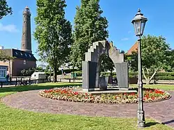 Das Kriegerdenkmal in Borkum wurde 1925 zum Gedenken an die 82 im Ersten Weltkrieg gefallenen Borkumer errichtet und trägt heute die Inschrift Verweile und gedenke der Toten und Vermissten der Kriege.[1] Bauherr war der örtliche Kriegerverein. Nach dem Zweiten Weltkrieg wurden die Namen von 260 Gefallenen und 62 Vermissten auf zusätzlichen Bronzetafeln montiert.[2] Der aus drei konzentrischen Halbbögen bestehende Bau mit der umfassenden Grünanlage wurde unter der ID 457002.00193M001 als historisch und städtebaulich bedeutendes Einzeldenkmal in die Denkmalliste des Landkreises Leer aufgenommen.