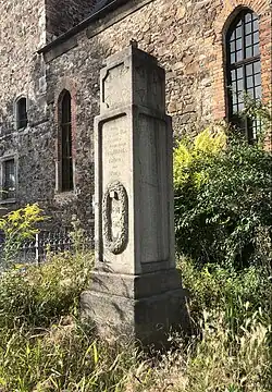 Ihren bis in den Tod Getreuen die Gemeinden Brachstedt, Hohen und Wurp. Darunter umschließt ein steinerner Kranz die Jahreszahlen 1914 - 1918 Auf der zur Kirche weisenden Nordseite steht: Den Gefallenen zum Gedächtnis den Hinterbliebenen zum Trost den Nachkommen zur Mahnung Auf den anderen Seiten sind die Namen der Gefallenen verzeichnet: Franz Albrecht Robert Bergmann (?) Karl Bräsickem (?) Franz Dell Otto Donath Paul Franke Herrmann Friedrich Paul G .. er (?) Friedrich Gebrandt (?) Albert Gonschorek Paul Graf Wilhelm Grothe Hermann Gumbrecht Hermann Hädicke Paul Henze (?) Albert Hinzmann (?) Rudolf Hoberg Karl Jung Wilhelm Krüger Paul Ohme Edgar Piller Fritz Quapis Johannis Ragotzky Emil Reiche Willi Reiche Albert Reuter Wilhelm Richter Max Schaaf Friedrich Schmidt Willi Städter Albert Stolle (?) Albert Stolle Paul Wolf Richard Würker |
