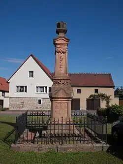 Die umzäunte Stele wurde zum Gedenken an die Soldaten des Deutsch-Dänischen Kriegs von 1864, des Deutschen Kriegs von 1866 und des Deutsch-Französischen Kriegs von 1870/71 errichtet. Sie steht am nördlichen Ende des Karl-Marx-Platzes in Leßlingen. Die Stele enthält die Inschrift Ehre die Thaten deiner Väter, daß du erhältst, was sie errungen sowie die Namen der Soldaten und bei den Gefallenen auch das Sterbedatum und den Sterbeort.