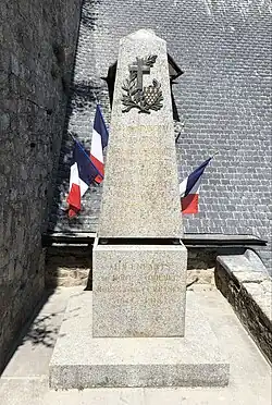 Das Kriegerdenkmal besteht aus einem auf einem Sockel stehenden Obelisken aus Granit. Am oberen Ende ist auf der Vorderseite ein Kreuz nebst Wappen der Gemeinde Mont-Saint-Michel und Blattschmuck angebracht. Darunter befindet sich in goldenen Lettern eine Inschrift, die die Namen der acht im Ersten Weltkrieg gefallenen Gemeindemitglieder benennt: