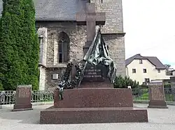 - ↑ a b Peter Franz, Ruth-Barbara Schlenker, Magdalene Schlenker, Harry Stein, Udo Wohlfeld: Kriegstod und Friedensvision. Kriegerdenkmäler im Wandel der Zeit. (PDF; 4,0 MB) In: oekumenezentrum-ekm.de. Evangelische Kirche in Mitteldeutschland, 2012, abgerufen am 11. Oktober 2024. PDF-Seite 5. – Die Enthüllung des Grabdenkmals in Vierzehnheiligen. In: Die Gartenlaube 1906, Nr. 43. S. 928.