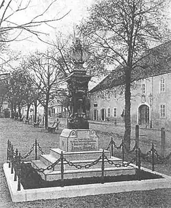Die Spenden für das Denkmal wurden von den Ortseinwohnern aufgebracht. Der damalige Brauch, einem Denkmal Landesmünzen beizulegen, wurde aufgrund des verlorenen Krieges und der damaligen finanziellen Lage verworfen und die Münzen gegen Papiergeld ausgetauscht. Zuvor stand dort ein Monument für Kaiser Franz Josef I., welches am 4. Dezember 1922 abgetragen wurde. Das Kaisermonument sollte nach den Plänen der 1920er Jahre vor der Schießstätte des Schützenvereins im Maurer Wald wieder aufgestellt werden.[3]