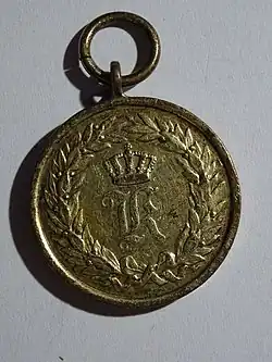 Die bronzene Medaille zeigt ein W (Wilhelm) mit Krone und Lorbeerkranz. Rückseitig ein von zwei gekreuzten Schwertern getragener Schild mit der Inschrift Für treuen Dienst in (Zahl der) Feldzügen.