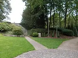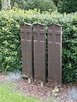 - ↑ Infotafel „Umbauphase & Neugestaltung“ des VDK auf der Kriegsgräberstätte Weeze.