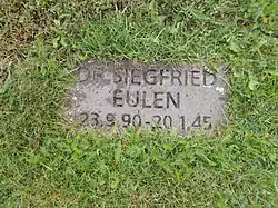 Vielleicht wollte man mit dem Soldatenfriedhof dem Gründer des Volksbundes Deutsche Kriegsgräberfürsorge 1919 ein Denkmal setzen. Dr. Siegfried Emmo Eulen starb am 20. Januar 1945 im Lazarett auf Schloss Wissen an den Folgen eines Lungensteckschusses. Sein Grabtäfelchen ist zwar ebenso unscheinbar wie das der anderen Kriegstoten, jedoch findet sich gegenüber an der Rondellmauer ein Gedenkspruch.[7]