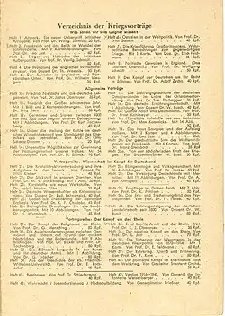 Die Reihenfolge der Vortragshefte ist nicht streng chronologisch. Manche Hefte, auch aus Vortragsreihen, erschienen später als andere Hefte der Reihe. Für die Hefte 48, 50–53, 111–114, 121–128, 137–150 findet sich heute kein Nachweis: wahrscheinlich sind sie nicht mehr in Druck gegangen.
