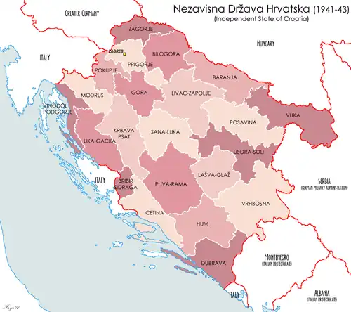 Nach der Kapitulation Italiens im September 1943 fielen die italienisch annektierten Gebiete an den Unabhängigen Staat Kroatien.