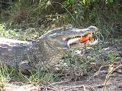 - ↑ S. G. Platt, R. M. Elsey, H. Liu, T. R. Rainwater, J. C. Nifong, A. E. Rosenblatt, M. R. Heithaus, F. J. Mazzotti: Frugivory and seed dispersal by crocodilians: an overlooked form of saurochory? In: Journal of Zoology. Band 291, Nr. 2, 2013, S. 87–99, doi:10.1111/jzo.12052