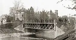 Die Holzbrücke wurde schließlich 1869 durch eine Eisenkonstruktion mit Steinunterbau ersetzt. Sie erreichte allerdings nicht die erwünschte Standfestigkeit und musste bereits drei Jahre später, nachdem sie infolge eines Dreisamhochwassers einstürzte, wieder aufgebaut werden.[4] 1876 wurde sie über die neu angelegte Werderstraße (heute: Werthmannstraße) mit der Bertoldstraße verbunden.[5][6]
