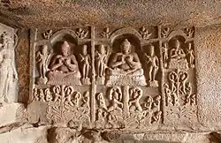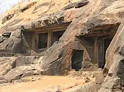 Das Kloster umfasst ca. 26 Höhlen. Zentrum der Anlage ist eine ursprünglich eher schlichte und nicht gewölbte Kulthalle (chaitya) mit einem Stupa-Bereich an ihrem Ende. Die Wände der Halle wurden in der Mahayana-Periode mit feingearbeiteten Reliefs versehen, die wiederholt den auf einer geöffneten Lotosblüte sitzenden und die Hände im Lehrgestus (dharmachakra mudra) haltenden Buddha zeigen; hinzu kommen Diener mit Fliegenwedeln und andere untergeordnete Figuren.