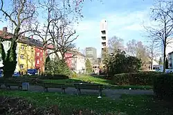 Von 1949 bis 1951 errichtete die Südwestdeutsche Wohnungsbaugesellschaft anstelle im Krieg zerstörter Häuser etwa 420 Wohnungen. Im Jahr 1957 wurde die Kirche St. Pius eingeweiht, 1966 die Dreifaltigkeitskirche. Aufgrund von Verkehrsproblemen während der Messezeiten wurden die Straßen 1978 verkehrsberuhigt. Im Jahr 1984 wurde ein Lärmschutzwall entlang der Braunfelsstraße aufgeschüttet, um die Bewohner vor dem Verkehrslärm der Theodor-Heuss-Allee zu schützen. Ebenfalls 1984 wurden 128 Wohnungen des Postsiedlervereins in der Friedrich-Naumann-Straße und Scherbiusstraße umfassend saniert. Im Jahr 2004 wurden in der Straße An den Katharinenhöfen zwölf Einfamilienhäuser gebaut.