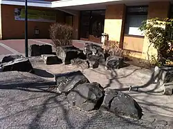 Zwei Pferde | Kunststein, 1969 | Lilly Voigt | Jaczostraße 53–67, auf dem Schulhof der Schule an der Haveldüne (Wilhelmstadt) | 52° 30′ 37,2″ N, 13° 11′ 9,9″ O |
