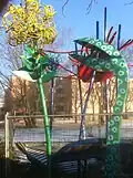 | Blumen-/ Drachen-Skulptur | Metall, 21. Januar 2008 | Schüler der B.-Traven-Oberschule nach eigenen Ideen | Die Skulpturengruppe befand sich am Fußweg östlich des Henri-Dunant-Platzes / Salchendorfer Wegs (Falkenhagener Feld). Sie wurde am 18. April 2013 demontiert, da sie durch Vandalismus bereits tlw. zerstört war und Unfallgefährdungen bestanden.[91] | 52° 32′ 45,1″ N, 13° 10′ 43,1″ O | |