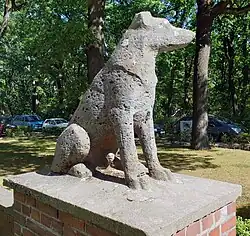 Berliner Bär | Kunststein (Betonguss), 1968 | Lilly Voigt | Die Skulptur eines stehenden Berliner Bären befindet sich direkt am Ortseingang an der Heerstraße (Staaken).[9] Die Plastik stand ursprünglich ca. zwei Kilometer weiter östlich an der früheren Grenzübergangsstelle Staaken in Berlin (West) und wurde erst nach Wiedereingliederung des zur DDR zählenden West-Staakens in den Bezirk Spandau an die heutige Landesgrenze versetzt. | 52° 31′ 44″ N, 13° 7′ 12,1″ O |